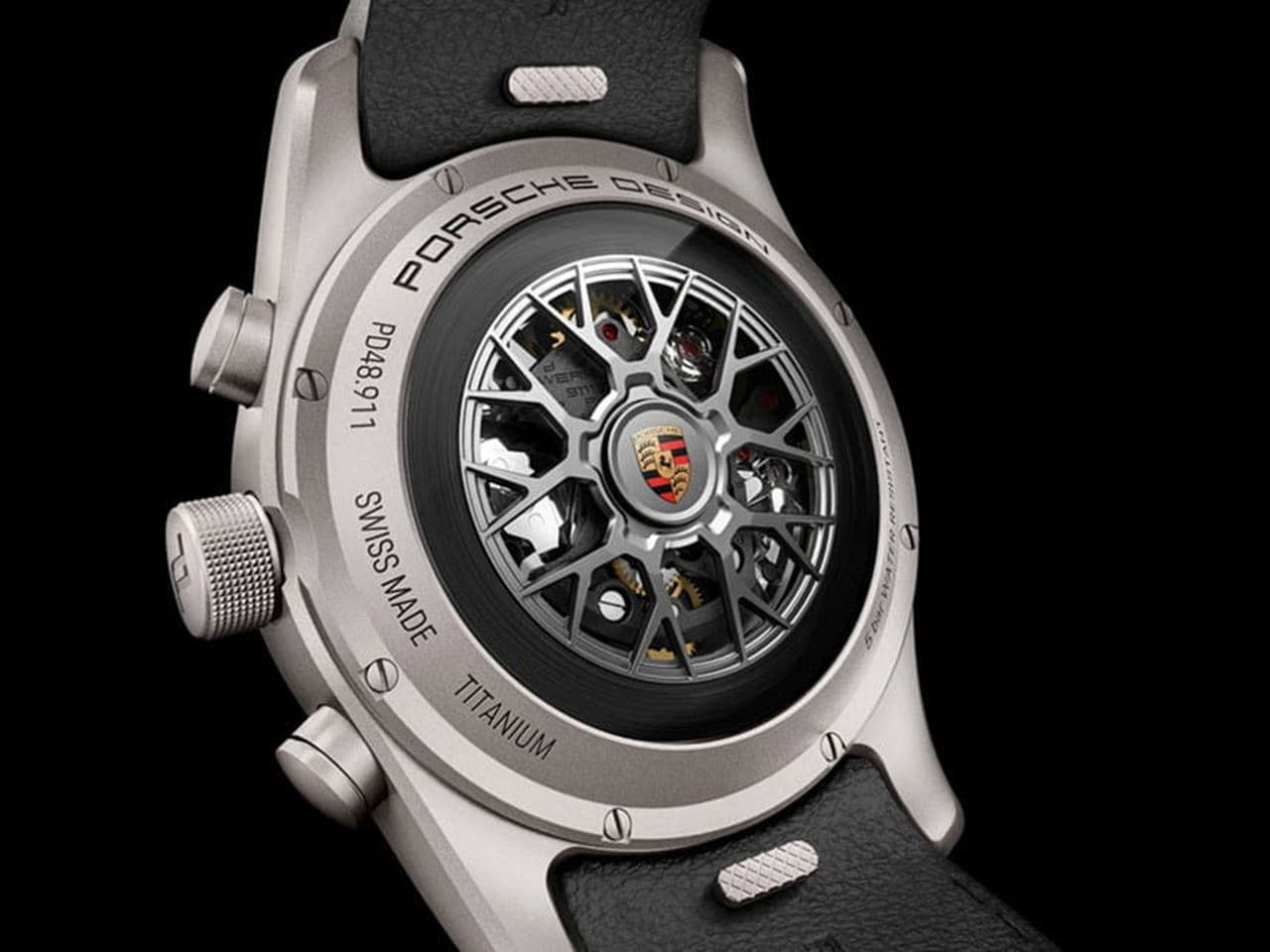 Inside each timepiece, individually designed by its owner, beats the heart of a mechanical movement that is powered by a winding rotor. You can choose between the characteristic PD icon rotor in classic Black or a rotor in the shape of the 911 wheel design. Each rotor is adorned with the striking wheel hub cover featuring the Porsche Crest. Inside is the PD chronograph caliber WERK 01.100 a COSC-certified caliber that combines engineering and watchmaking expertise in a technical masterpiece.